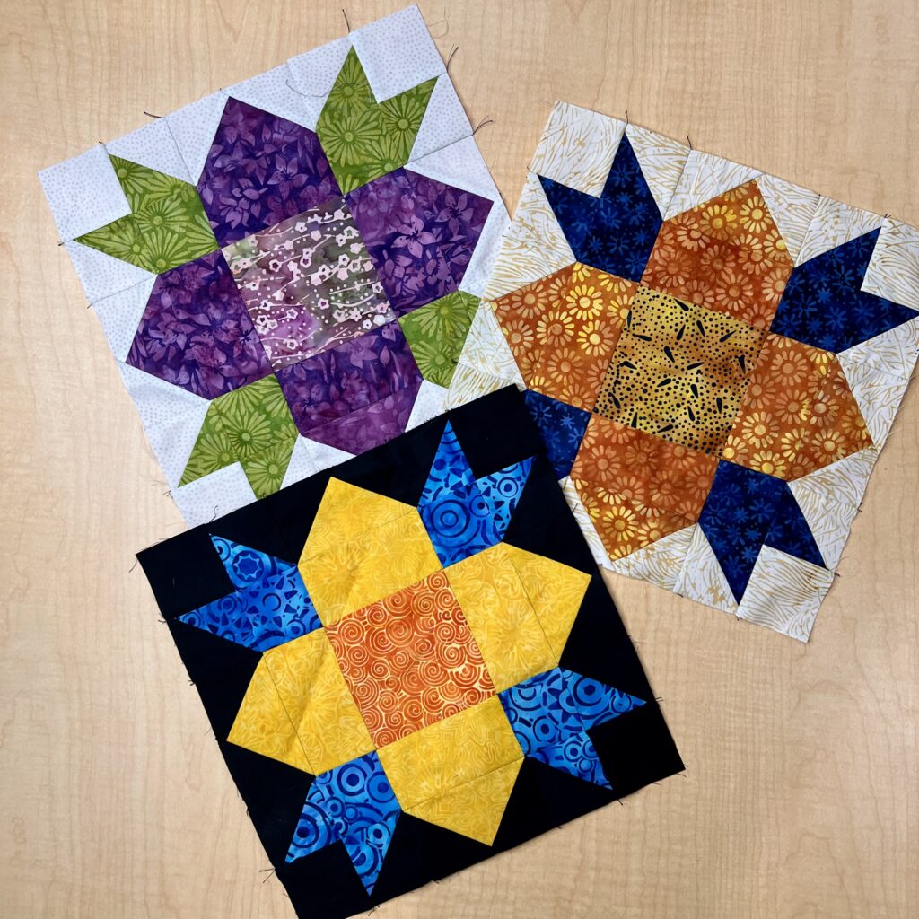 Local quilt guilds and churches are good places to donate unused quilt blocks. Many of these organizations use them to make quilts for hospitals or children’s organizations.